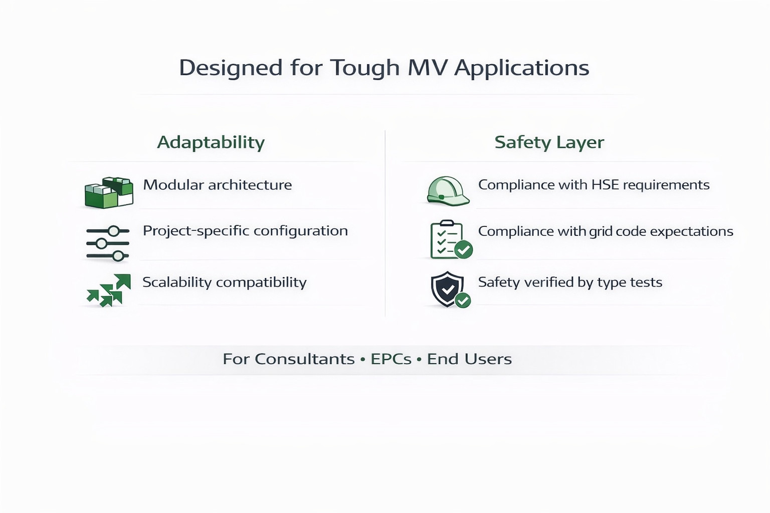 With a modular architecture and tailor-made configuration options, SMC panels can be adapted to project-specific layouts, protection schemes and future expansion needs. Internal arc certification adds an extra layer of confidence for consultants, EPCs and end users who must demonstrate compliance with stringent HSE and grid-code requirements.